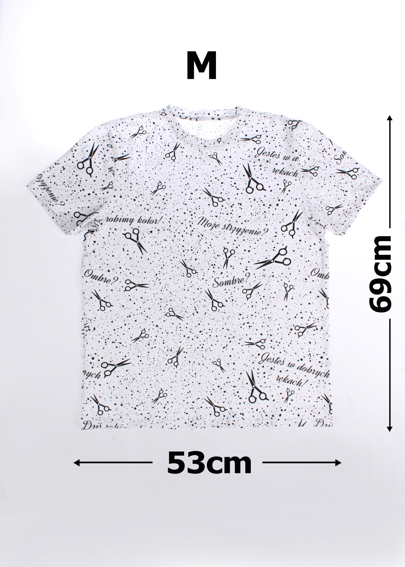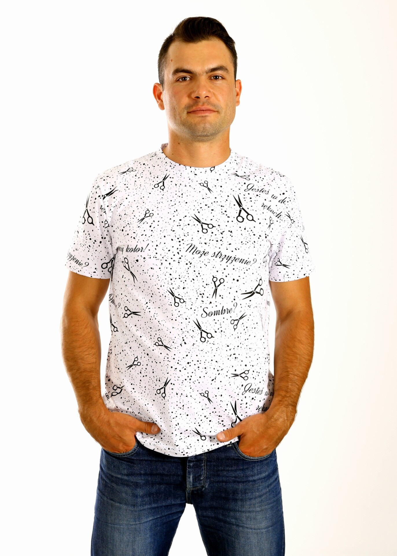 T-shirt fryzjerski Męski Galaktyka Biały to idealny wybór dla każdego profesjonalisty w branży beauty, który pragnie połączyć styl z funkcjonalnością. Ten wyjątkowy t-shirt wyróżnia się oryginalnym nadrukiem, który z pewnością przyciągnie uwagę klientów i doda charakteru każdej stylizacji. Wykonany z najwyższej jakości 100% bawełny, zapewnia komfort noszenia przez cały dzień, a jego trwałość i odporność na rozciąganie sprawiają, że jest niezawodnym elementem garderoby dla każdego stylisty.