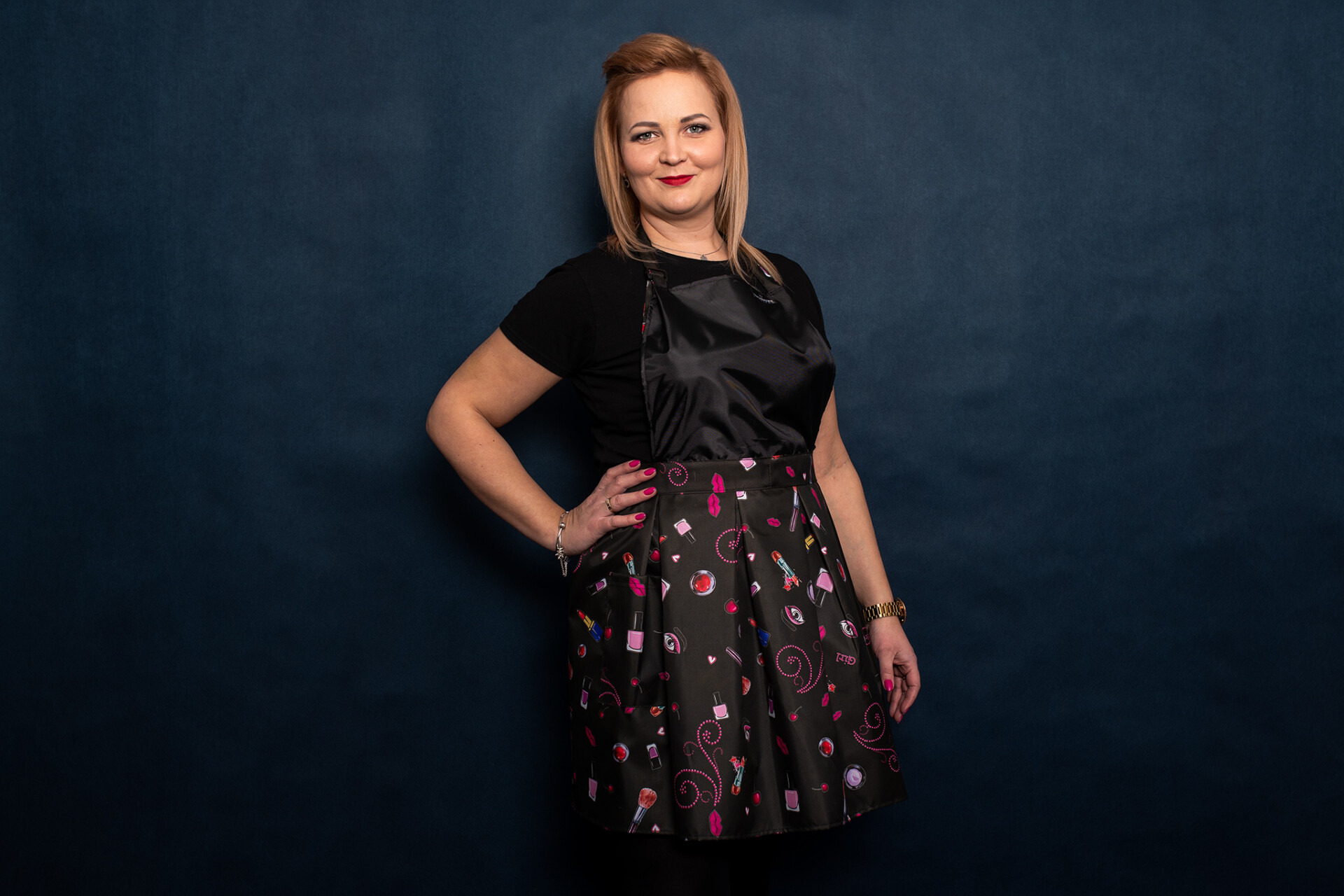 -Dół fartuszka czyli spódnica w boskim nadruku branży Beauty zaskoczy Waszych klientów!