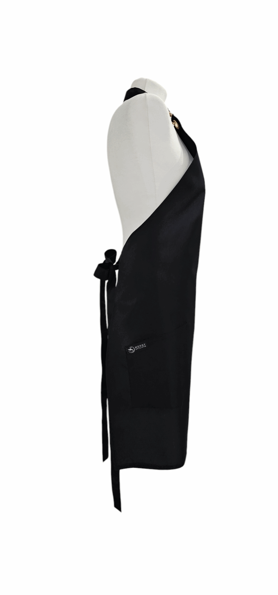 Fartuszek Klasyczny to nie tylko estetyka, ale przede wszystkim komfort użytkowania. Dzięki długim wiązaniom, które można zawiązać zarówno z tyłu, jak i z przodu, fartuch łatwo dostosowuje się do indywidualnych potrzeb użytkownika. Wyposażony w dwie praktyczne kieszenie, pozwala na wygodne przechowywanie niezbędnych akcesoriów fryzjerskich, takich jak nożyczki czy grzebienie. Złote przelotki dodają mu elegancji, a jednocześnie zapewniają trwałość i wytrzymałość.