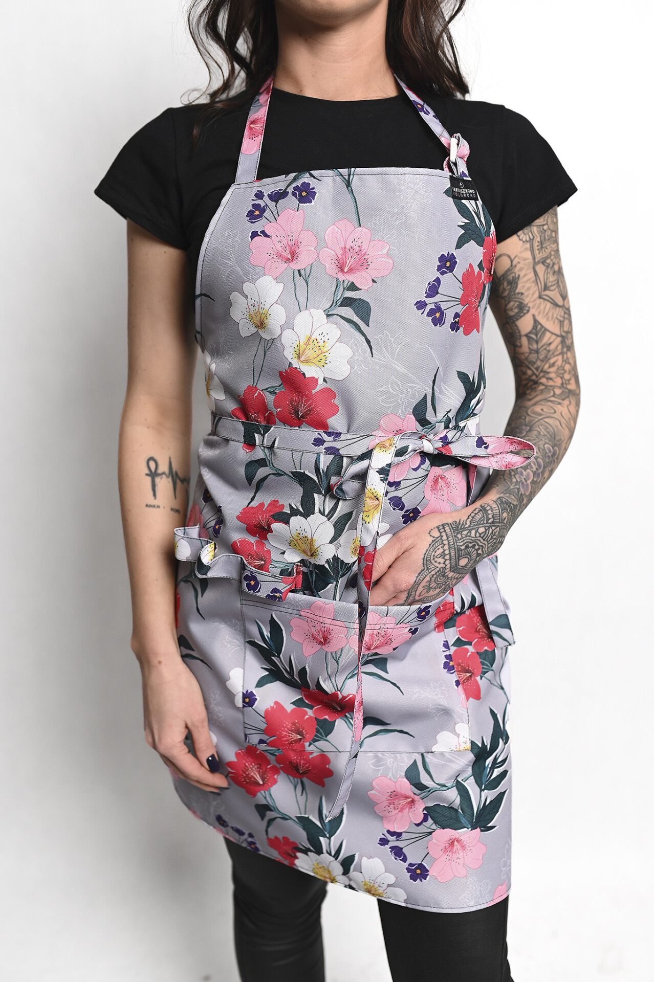 Wszyte długie wiązania pozwolą zawiązać fartuszek z przodu podkreślając talię .