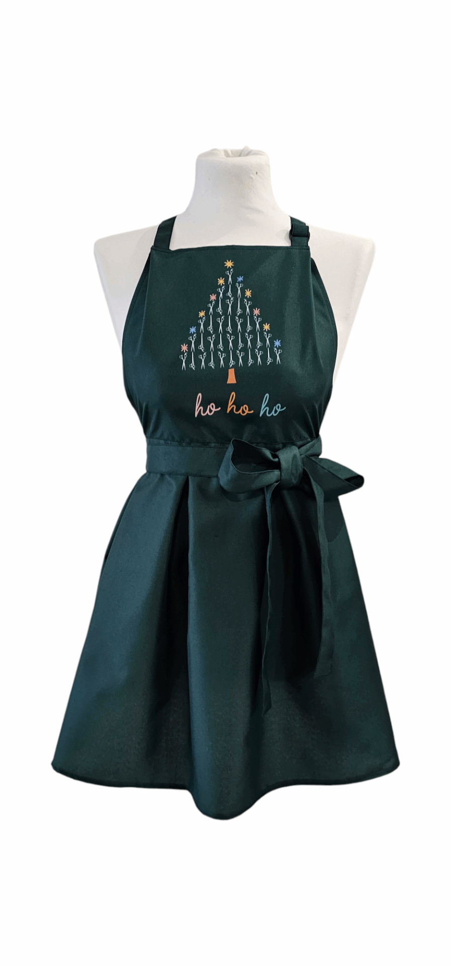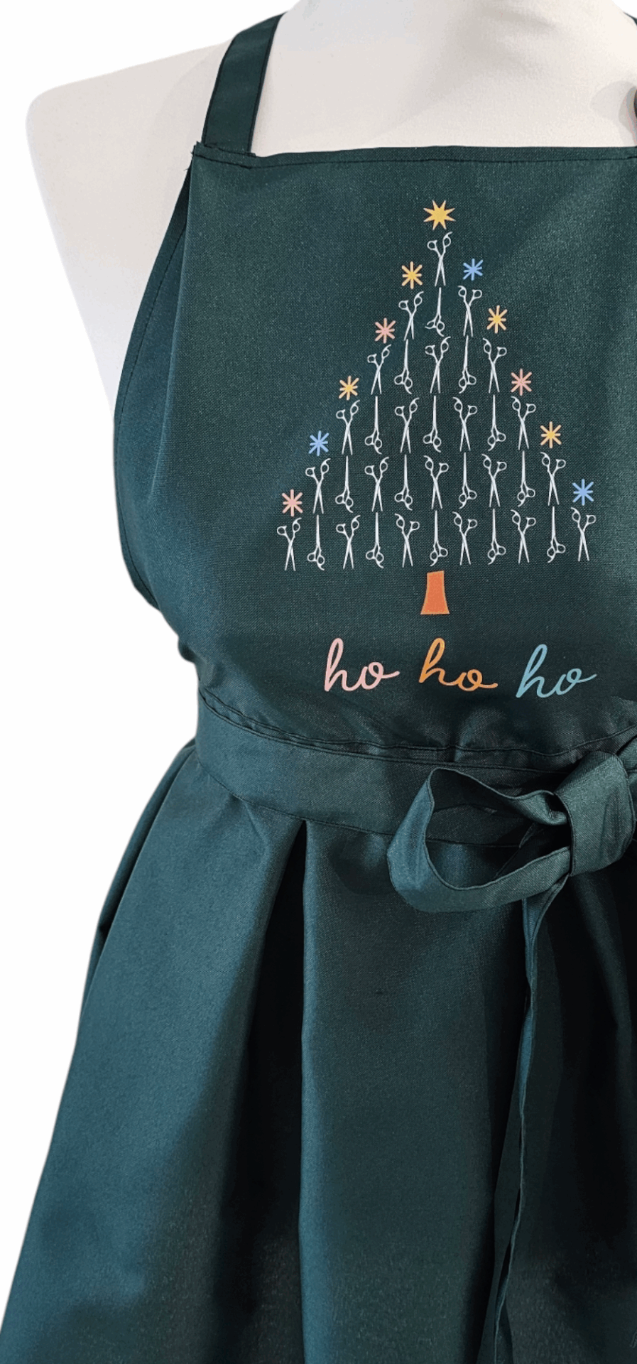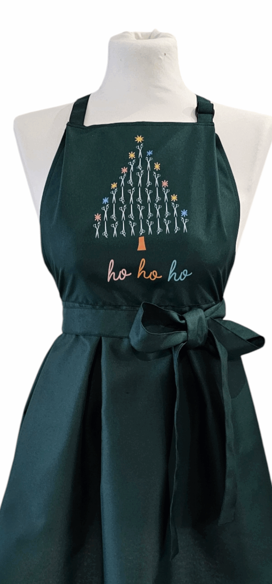 Świąteczny fartuszek fryzjerski to nie tylko praktyczne rozwiązanie, ale także sposób na stworzenie ciepłej, przyjaznej atmosfery w salonie. Klienci z pewnością docenią ten drobny akcent, który wprowadza do wnętrza odrobinę świątecznego nastroju. Nadruk choinki z nożyczek to subtelny, ale efektowny detal, który przyciąga wzrok i wyróżnia Twój salon na tle konkurencji.