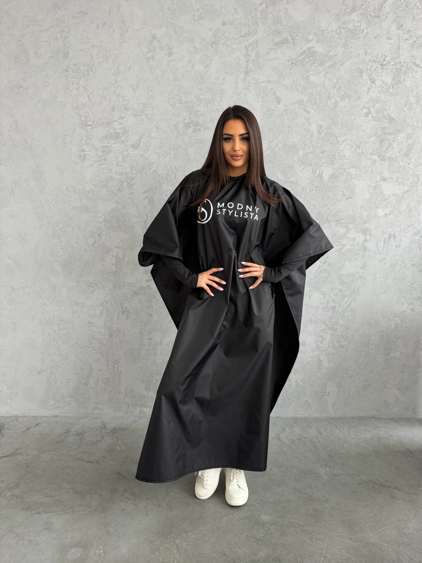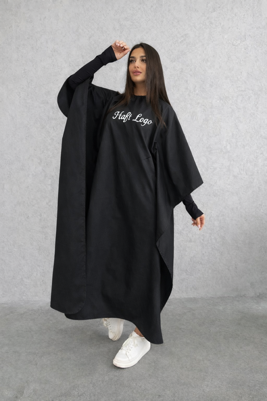 Peleryna fryzjerska z haftem logo wykonana jest z wysokiej jakości tkaniny, która sprawdza się w codziennej pracy salonu. Materiał jest łatwy w pielęgnacji i umożliwia standardowe pranie, dzięki czemu peleryna szybko wraca do ponownego użycia nawet w intensywnie pracujących salonach.