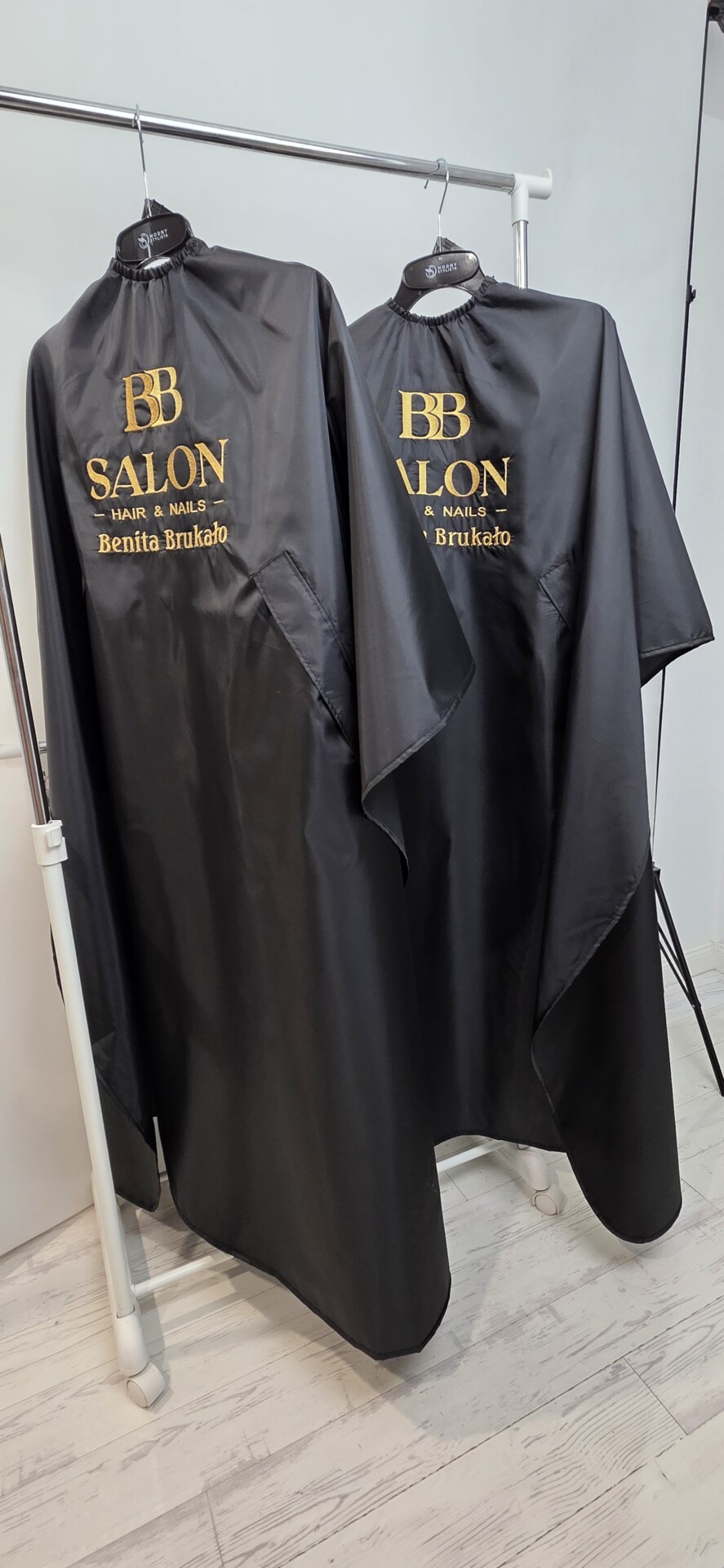 Peleryna fryzjerska z haftem – inwestycja w wizerunek salonu